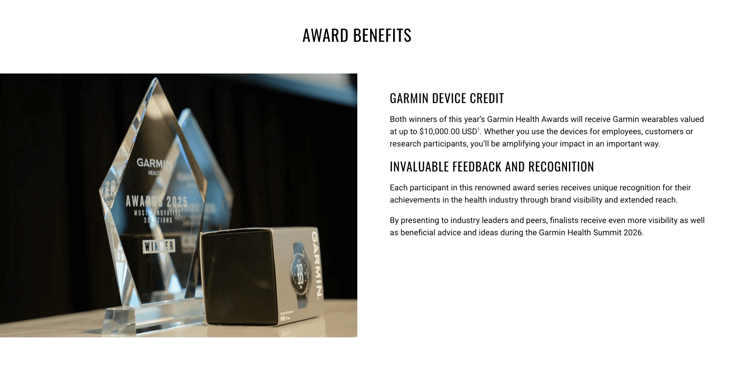 garmin.com/garmin-health-award Annual awards program recognizing digital health innovation.