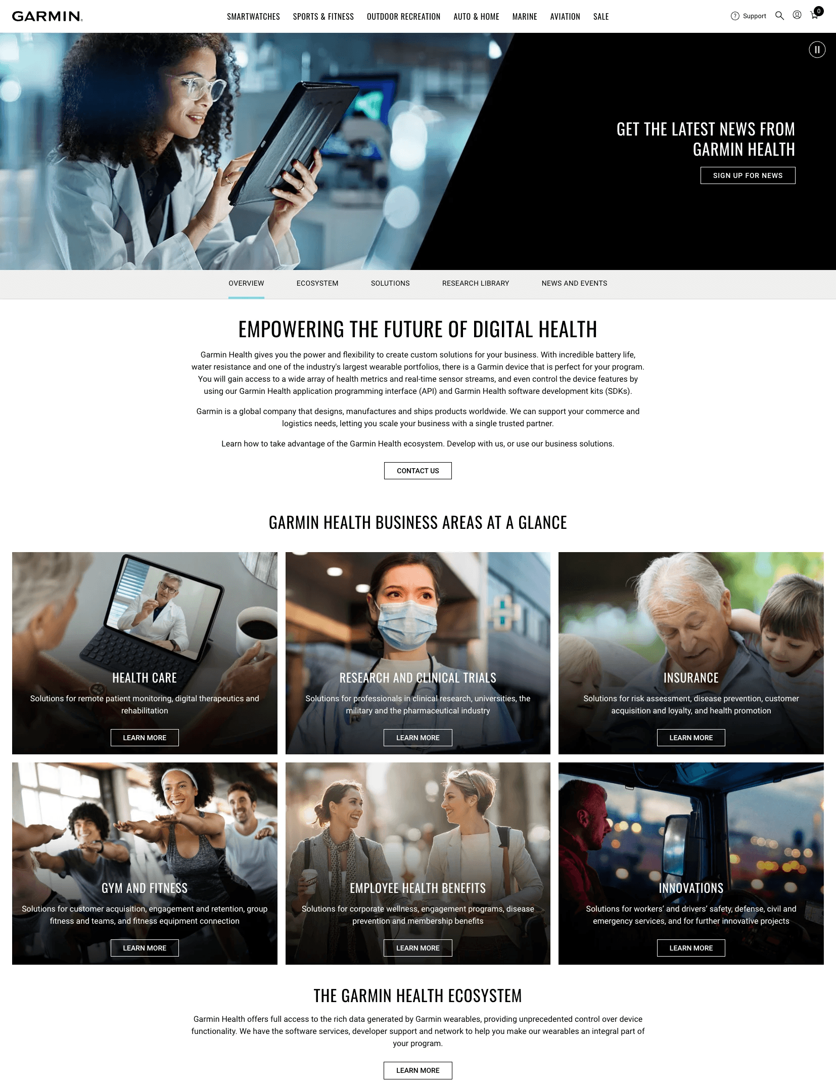 garmin.com/health Primary landing page - dual-audience entry point for consumers and enterprise partners.